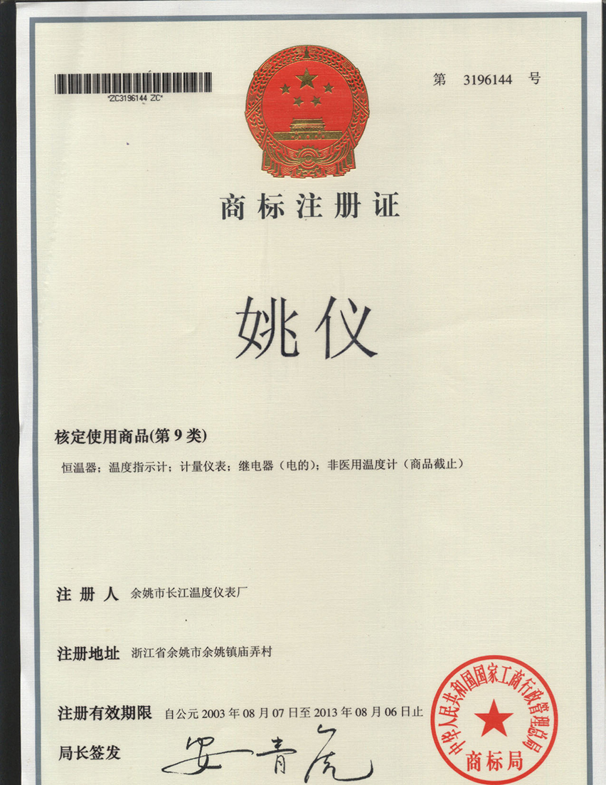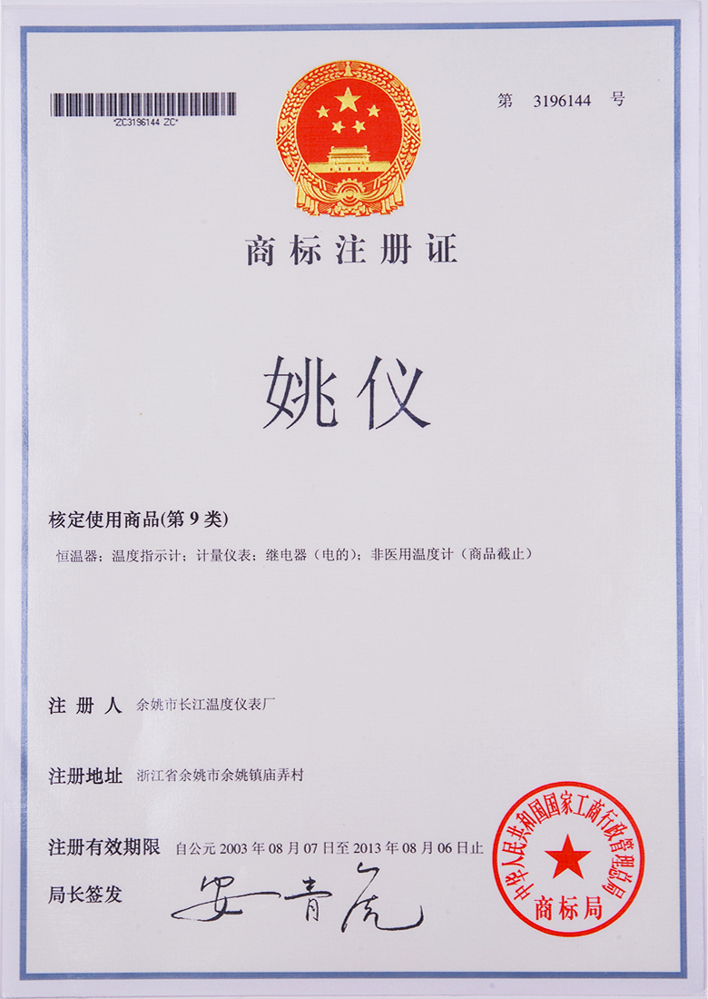 溫度儀表商標(biāo)注冊證