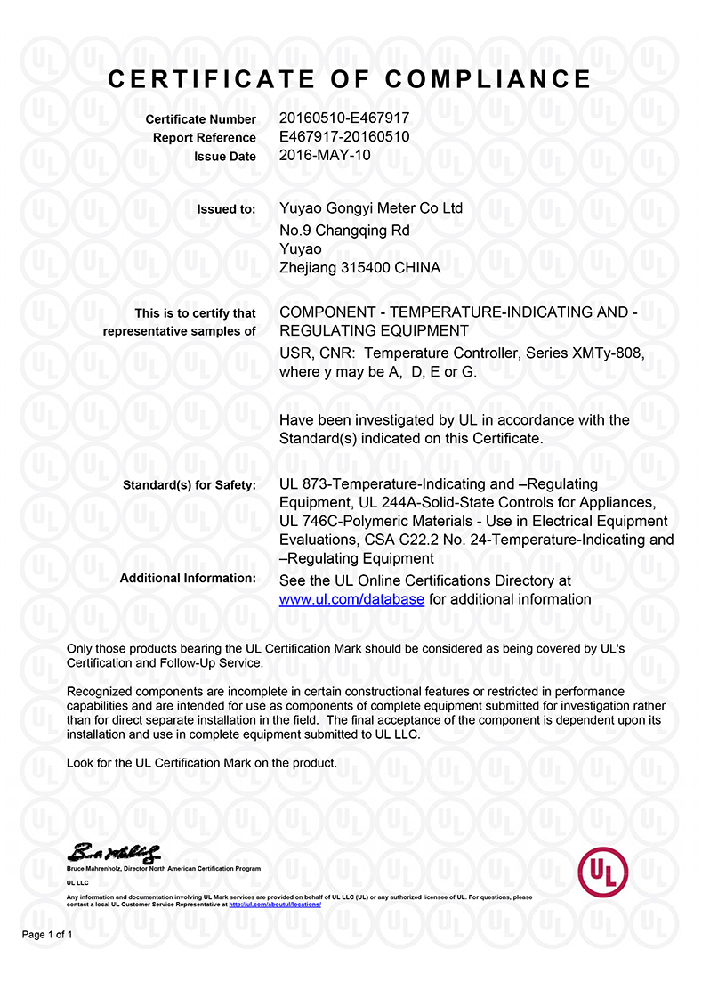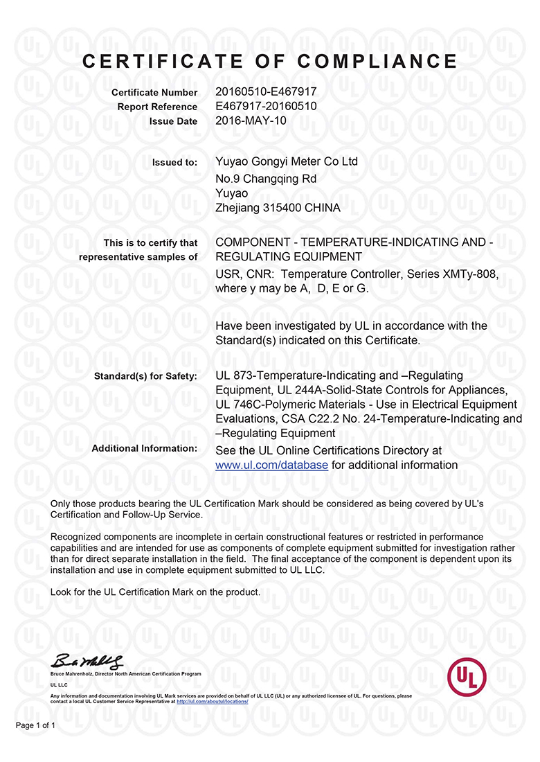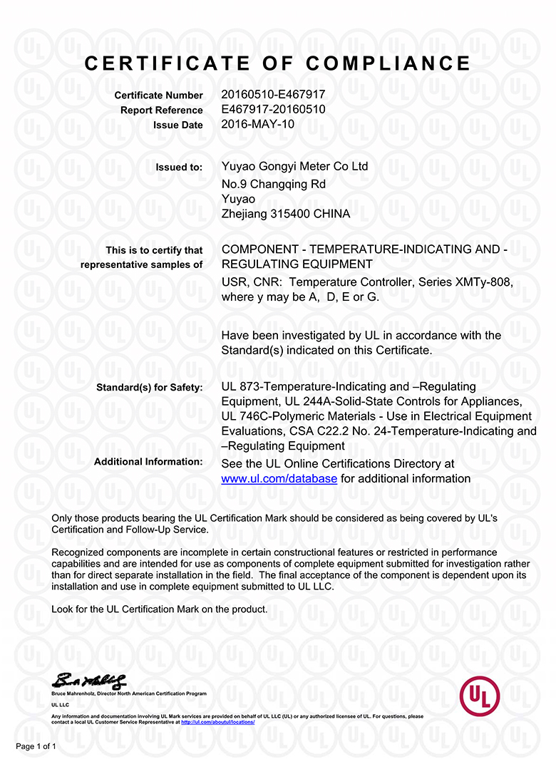 工易儀表UL證書