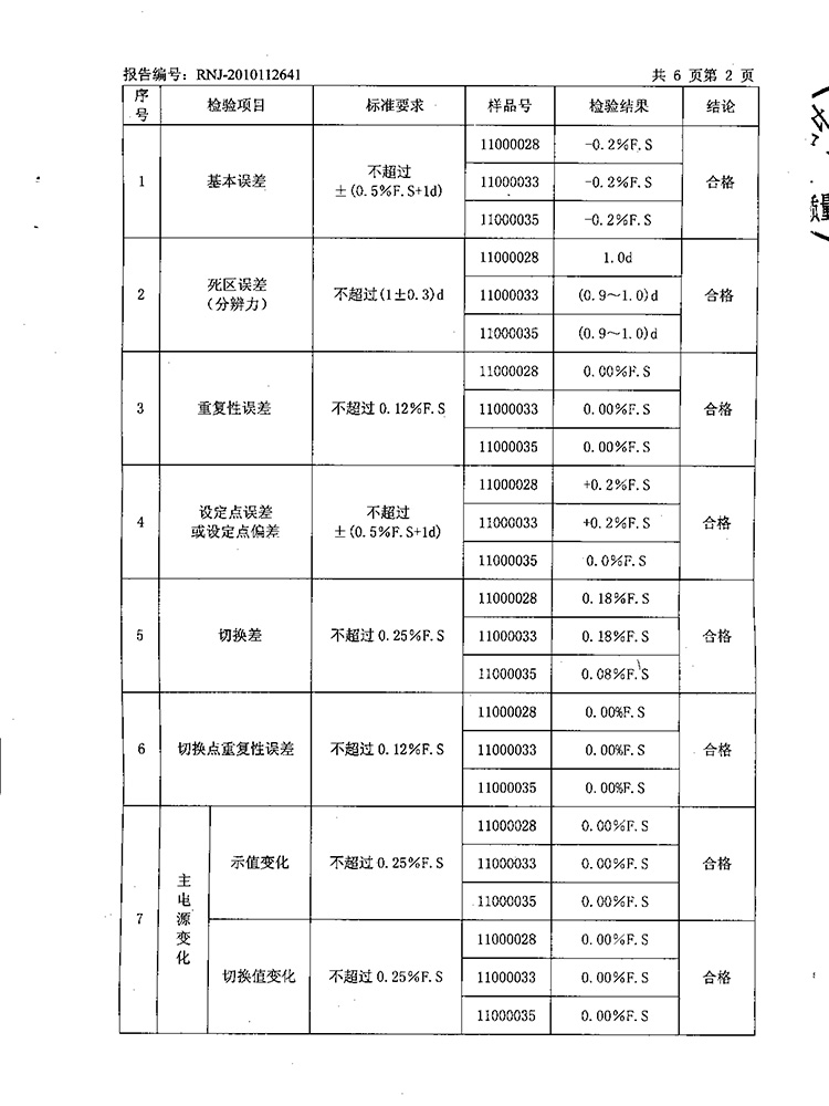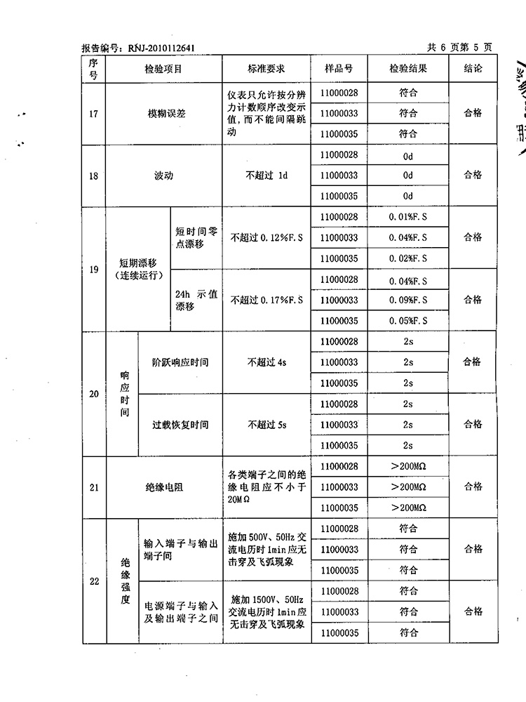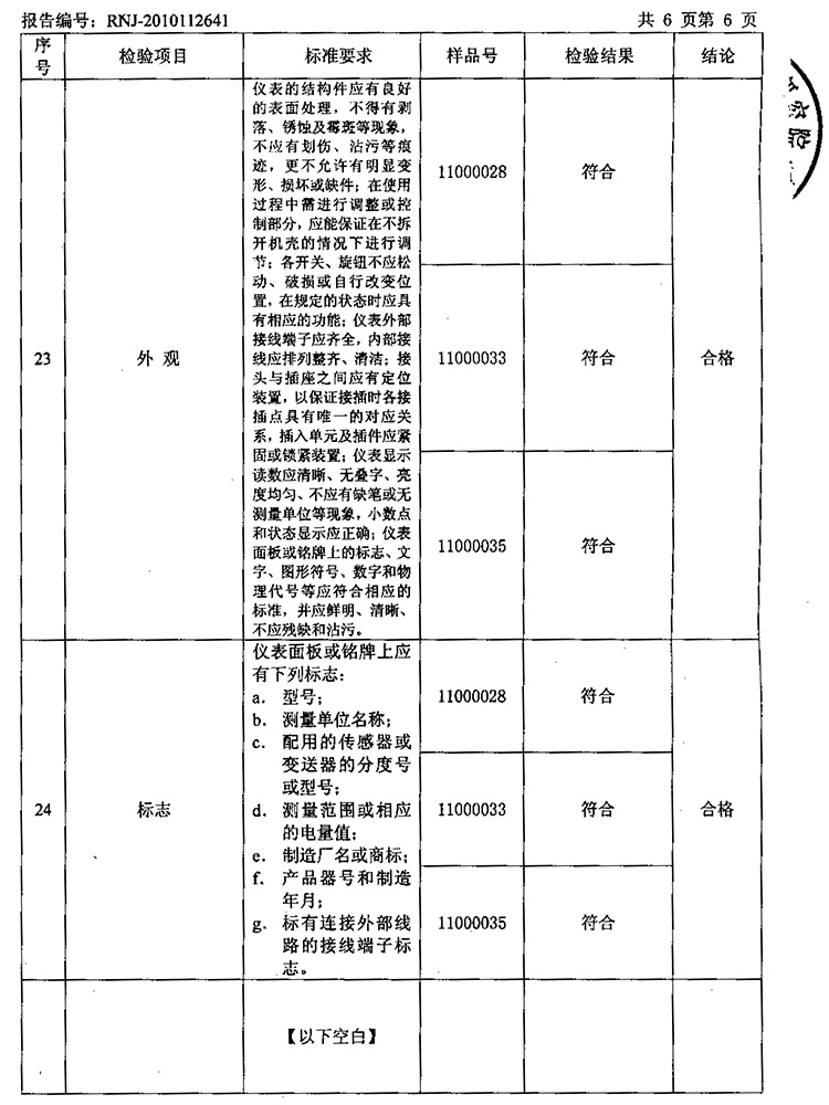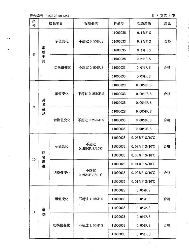 2011年第2季度檢測報告(工業(yè)熱電偶)