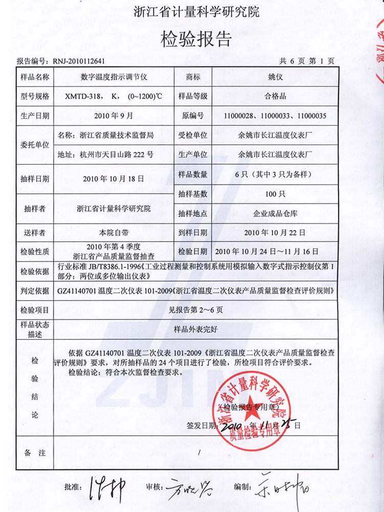 2010年第4季度檢驗報告(XMTD-308)