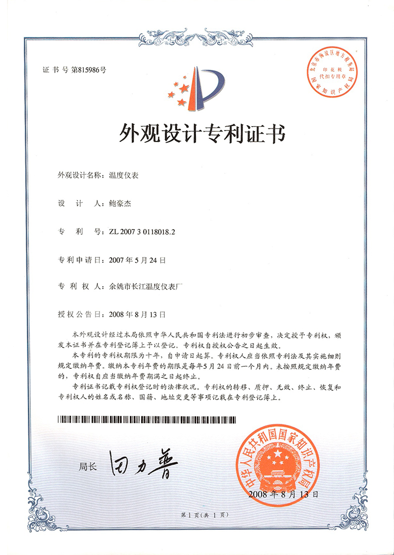 實(shí)用新型專利證書-導(dǎo)軌式溫度控制儀