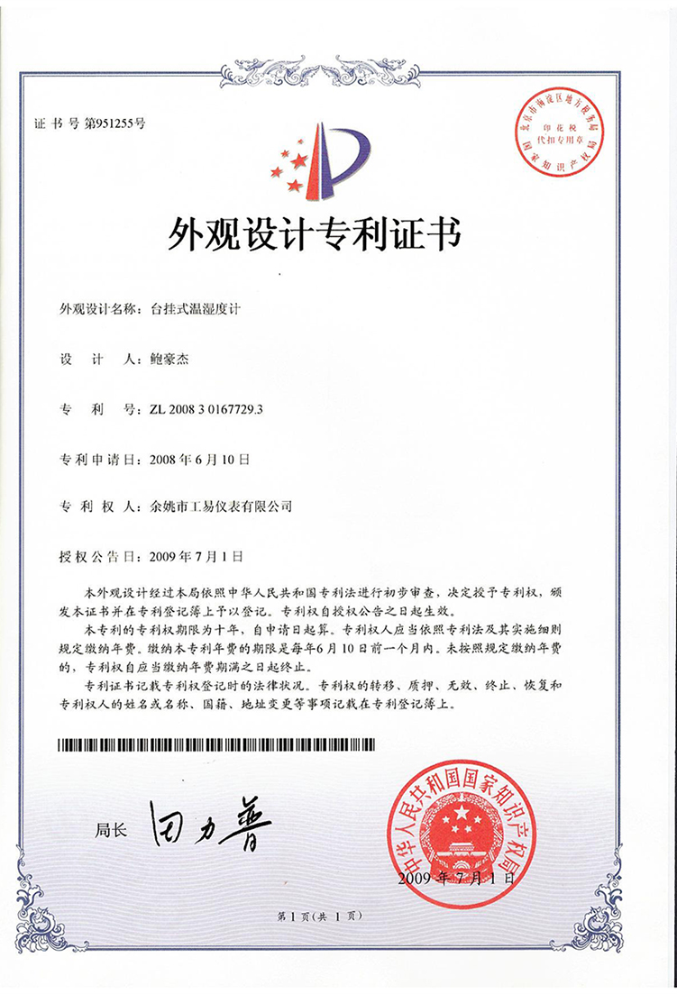 溫度調(diào)節(jié)儀1832902.9專利證書